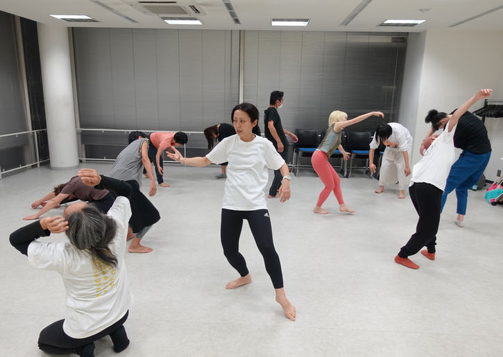 舞踏の特徴は自分の体をからっぽの袋をイメージすることです。基本トレーニングではその袋の中に水をイメージし、水によって体を動かすことで新たな感覚を開拓します。この独特な発想は、西洋のダンスとは異なる身体への向き合い方が特徴であり、ダンスが苦手と感じている方でも自分のペースで進めることができます。ワークショップは初心者の方でも無理なく参加でき、リラックスしながら頭と体の緊張をほぐす心地よい内容です。